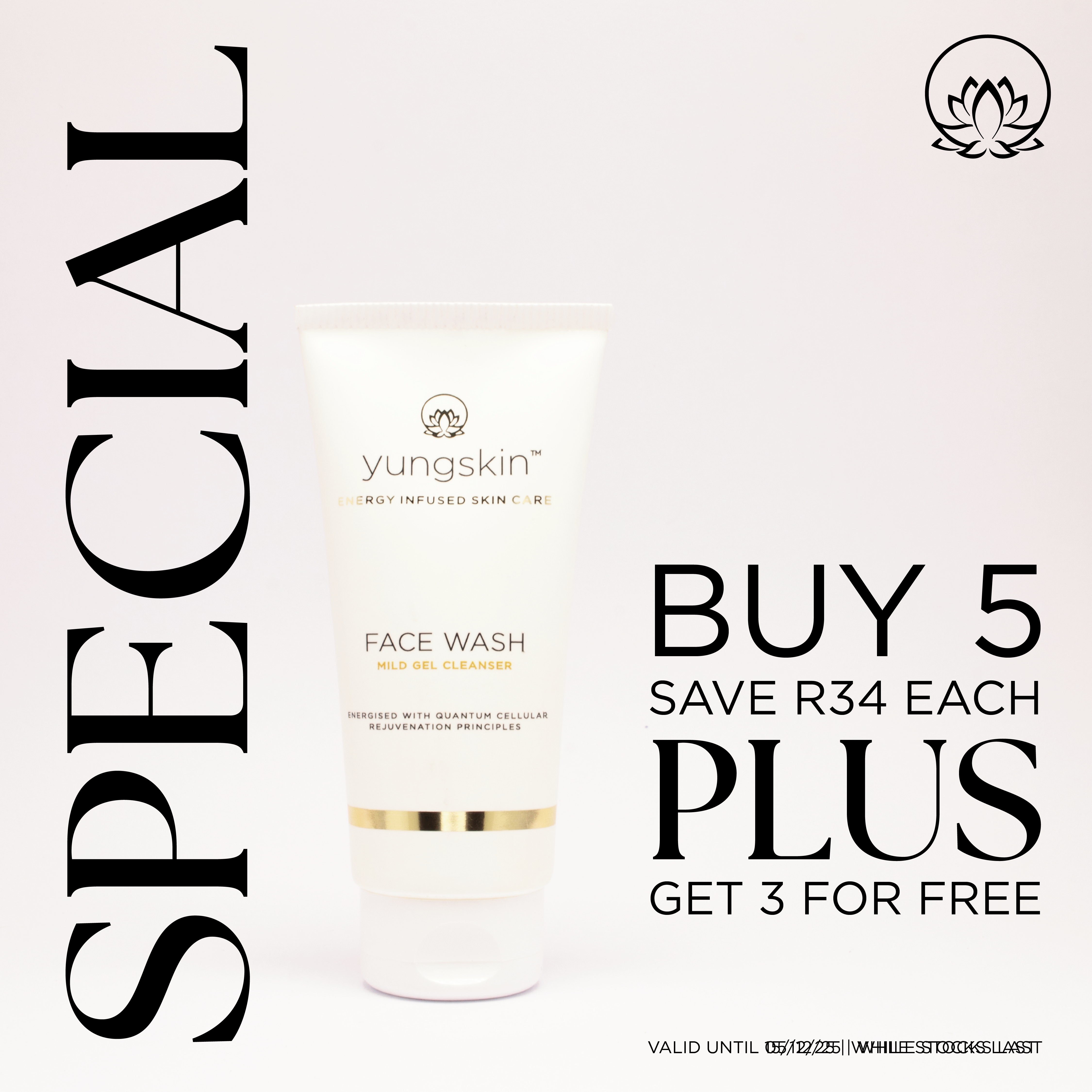 Keep your skin feeling fresh and balanced with our Face Wash (100 ml), normally R129 each. With this special offer, when you buy 5 units at R95 each, you’ll receive 3 extra units free — that’s 8 face washes for R475, working out to only R59.38 per unit.